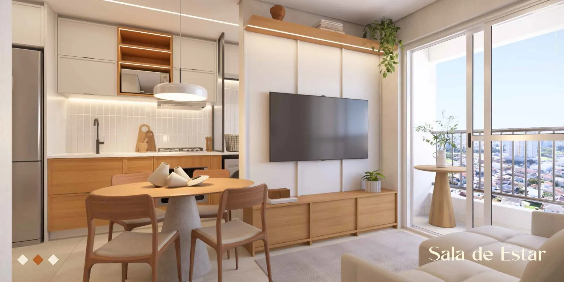 • Sala de estar e jantar integradas