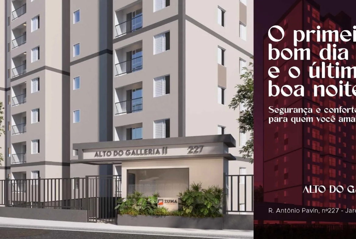 O Alto do Galleria II é um empreendimento residencial pensado para quem busca conforto, praticidade e localização estratégica em Campinas. Com torre única e projeto funcional, oferece apartamentos bem distribuídos, lazer completo e um ambiente seguro para viver o dia a dia com tranquilidade.