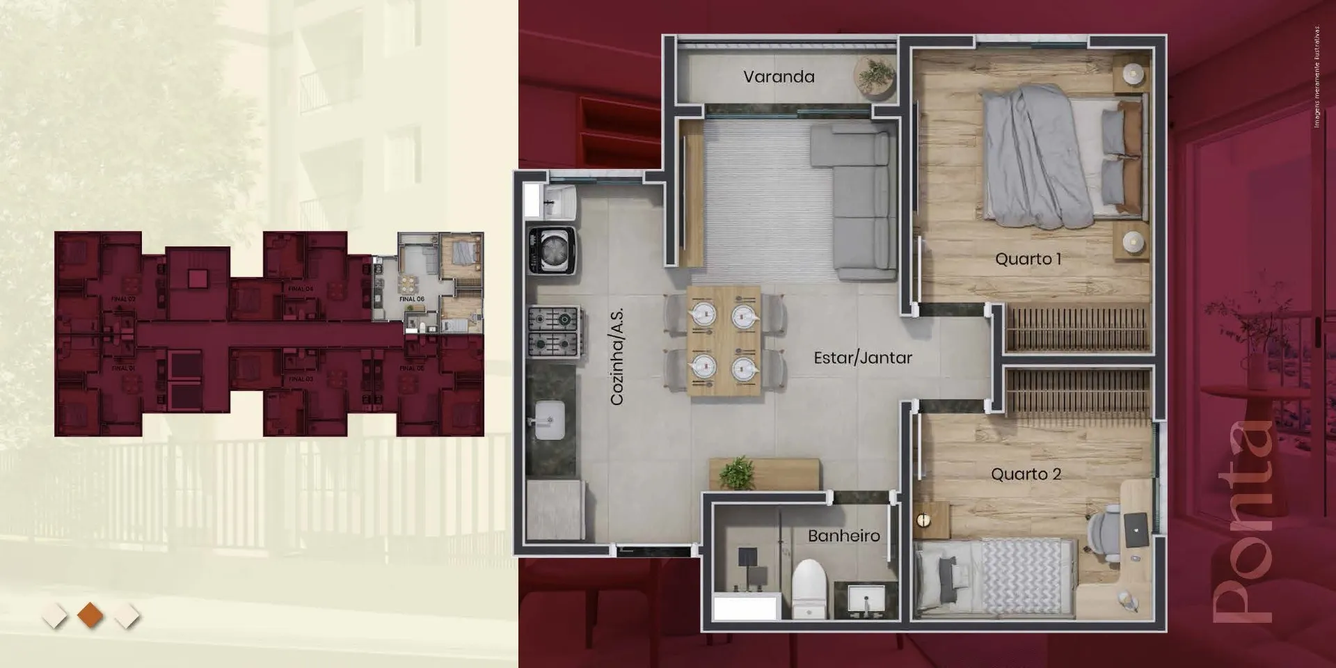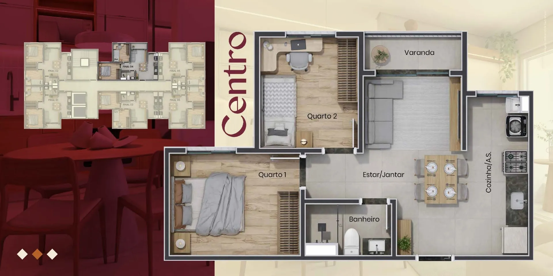 • Tipologia: apartamentos de 2 dormitórios