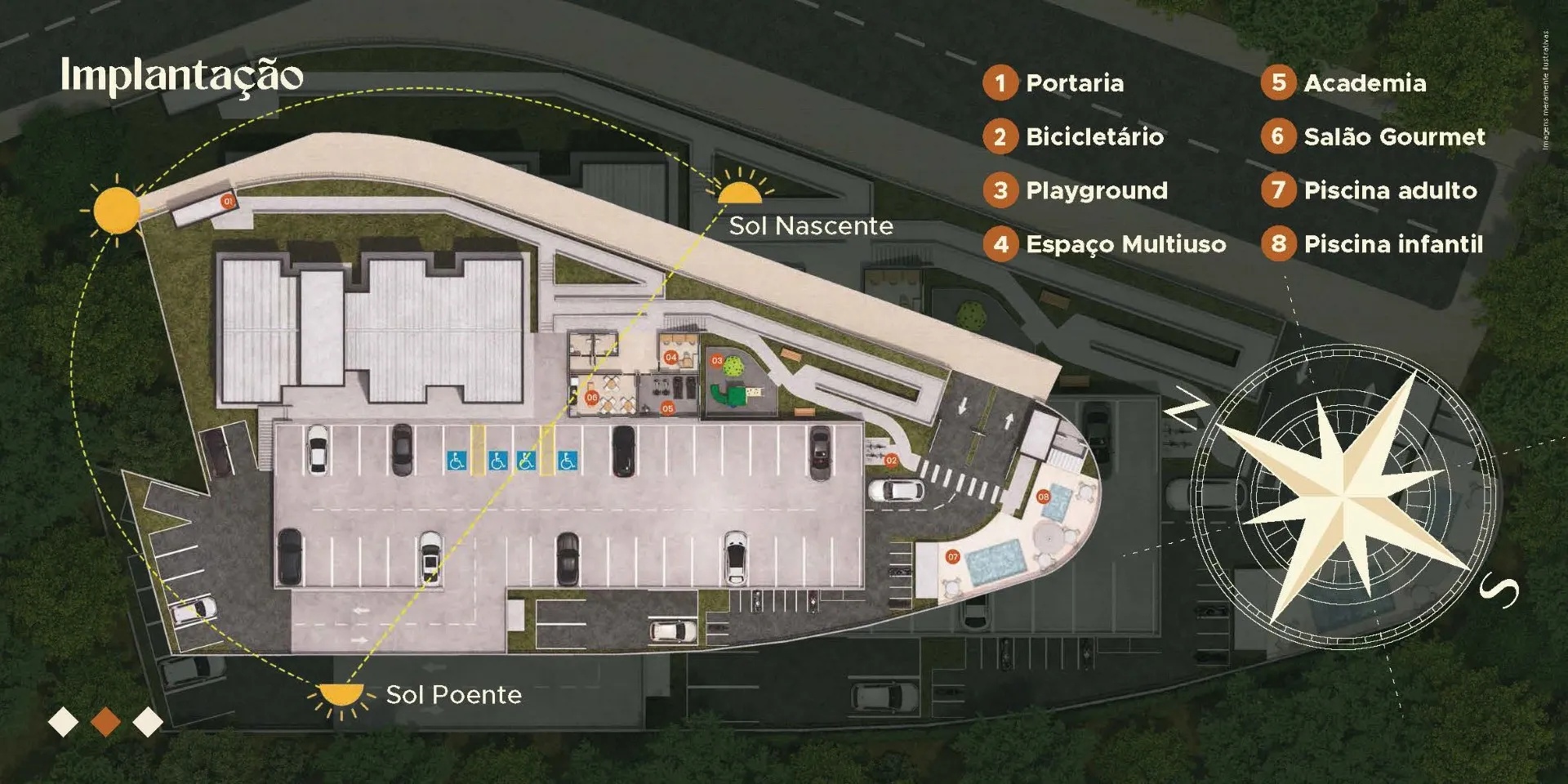 A implantação do empreendimento foi planejada para otimizar insolação, circulação e áreas de lazer.