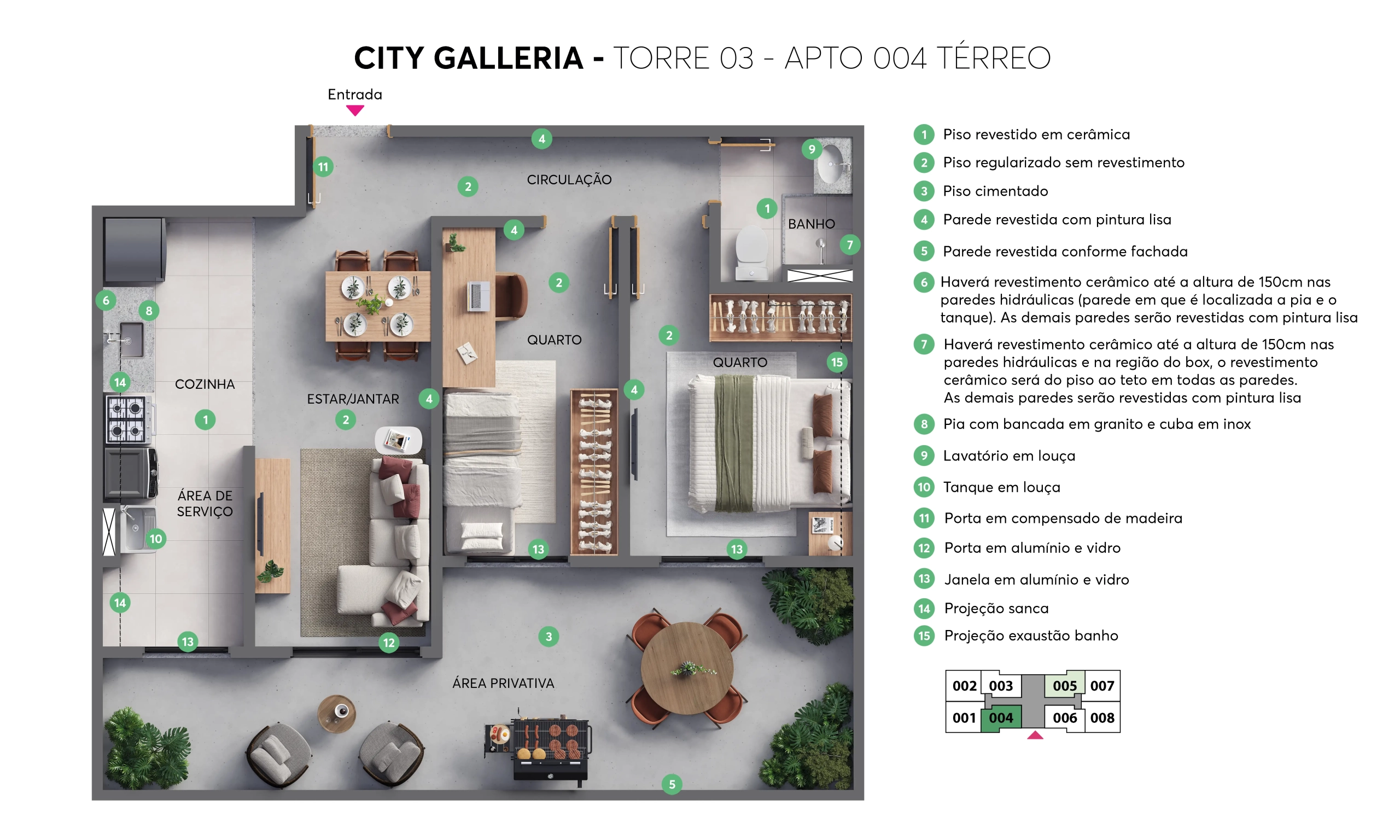 O City Galleria é um empreendimento moderno localizado em uma das áreas mais nobres e valorizadas de Campinas: a Região do Galleria. Com arquitetura contemporânea e estrutura robusta, une praticidade, conforto e um estilo de vida sofisticado. Morar no City Galleria significa viver próximo aos principais pontos de conveniência da cidade, com mobilidade, lazer completo e valorização imobiliária constante.
