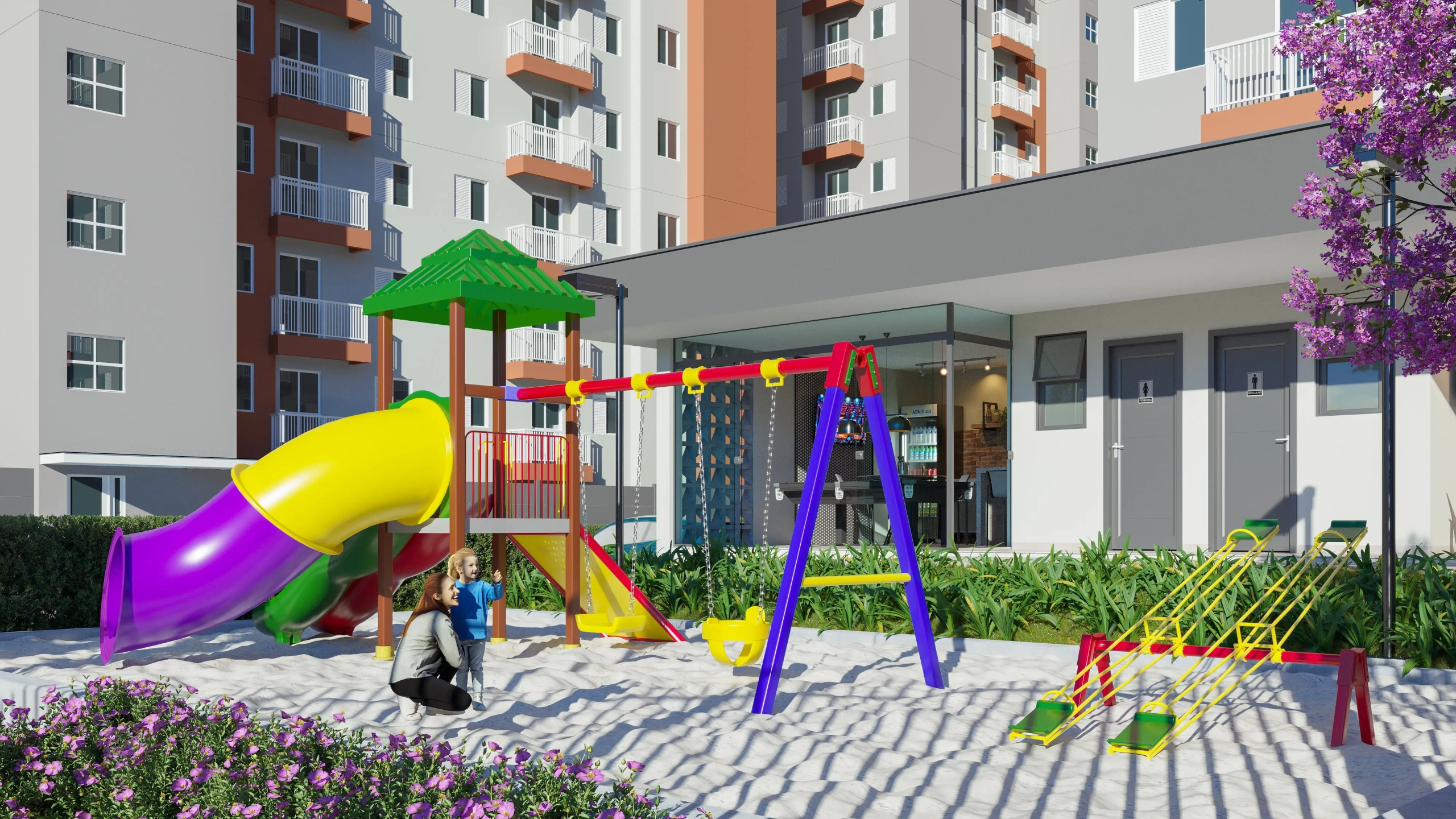 apartamentos de 2 dormitórios, incluindo opções de térreo com quintal privativo, além da área de