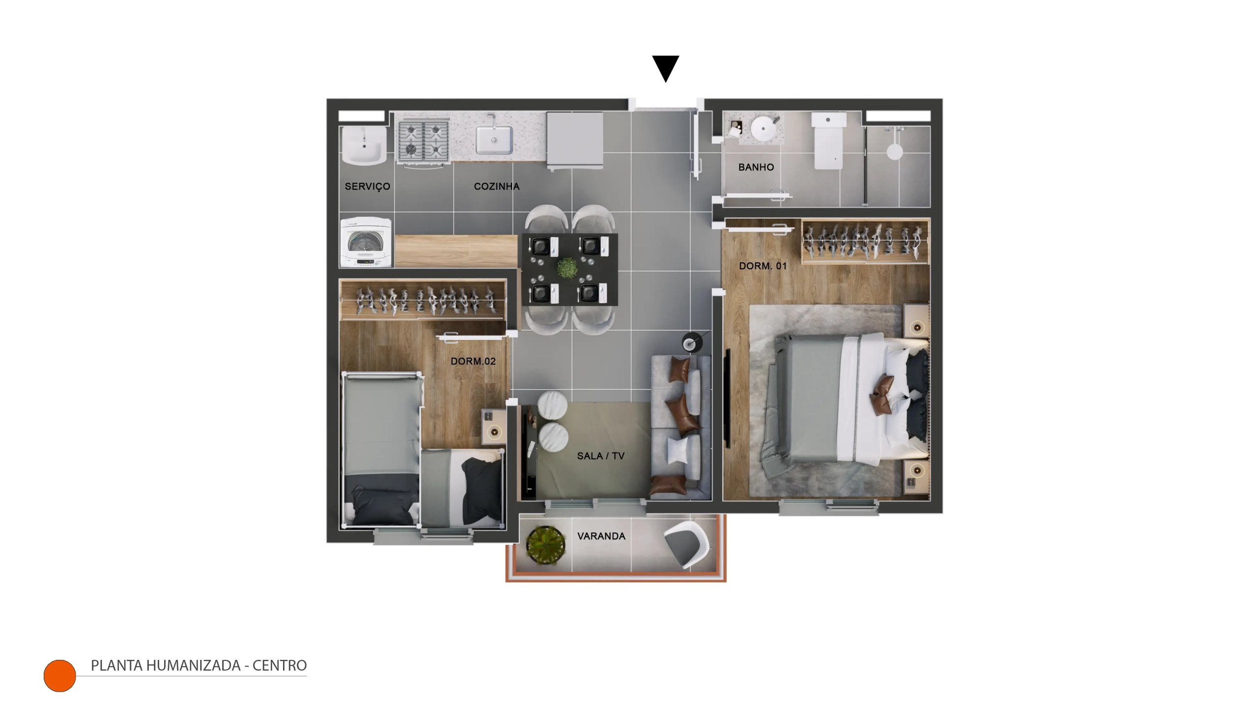 Apartamento pavimento tipo com 38,65m². Composição: 2 dormitórios, 1 banheiro, varanda, sala integrada, cozinha, área de serviço, 1 vaga de garagem. Planta compacta e funcional com excelente aproveitamento de espaços. Melhor preço do empreendimento. Ideal para estudantes, jovens profissionais ou investidores. Disponível nos Blocos 01 e 03. Finais: 03, 04, 09 e 10 (Bloco 01)